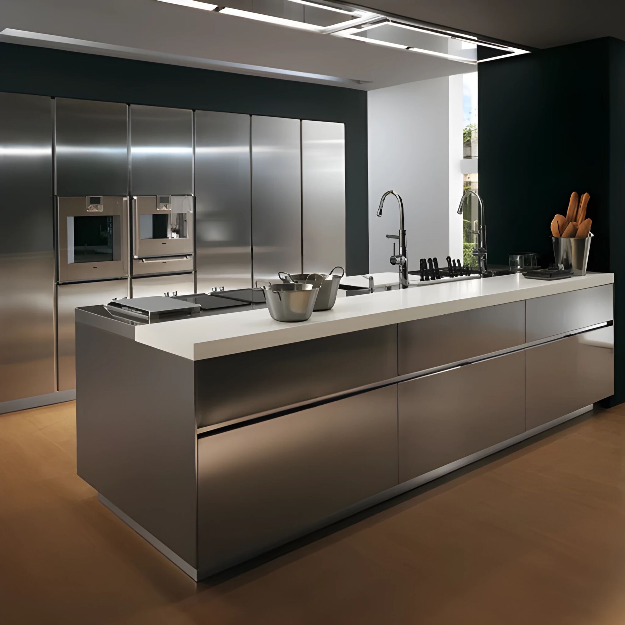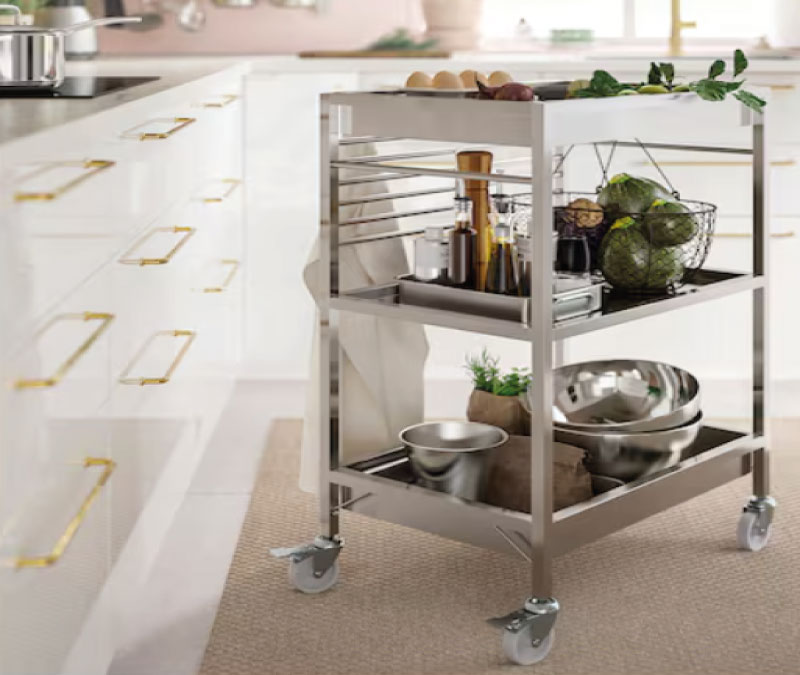 Ingin yang lebih elegan dan awet? Material pilihan yang terbaik adalah stainless steel, terlebih pada area dapur. |